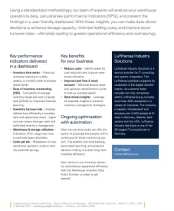 The Warehouse Inventory Data Audit is a one-time AI-powered analysis designed to evaluate the efficiency of your warehouse operations by analyzing key data points. This audit provides deep insights into inventory turnover rate, storage utilization, and cost structures, enabling you to identify inefficiencies and improve overall ware- house performance.
