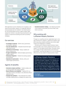 Lufthansa Industry Solutions, part of the Lufthansa Group, supports cargo, logistics, and retail companies worldwide with tailored digital transformation services. Our expertise includes real-time tracking, predictive analytics, process automation, and smart supply chain management, ensuring operational reliability and transparency. Leveraging advances in Agentic AI, we enable systems to analyze situations, adapt instantly, and make informed decisions. This helps operators respond faster, reduce costs, and optimize resources. With our aviation heritage, we deliver proven quality and security to every project.